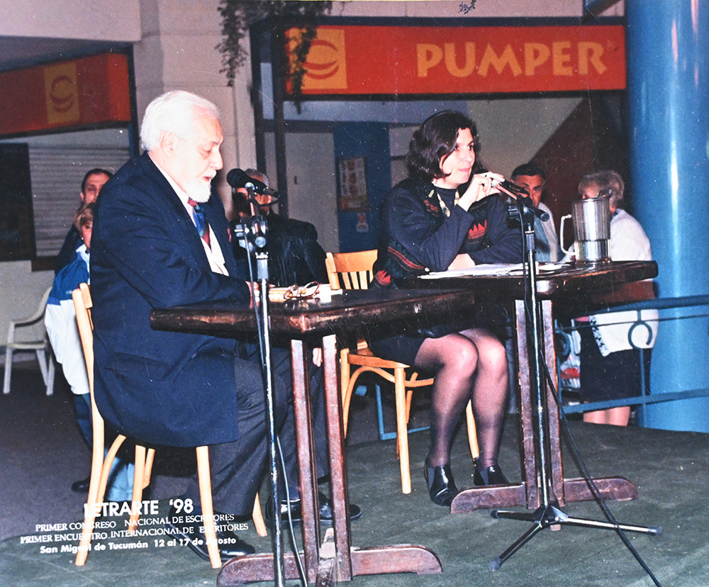 En tercer lugar, aparecen fotos de tres eventos interprovinciales: el “Primer Encuentro de Escritores del NOA y Tarija” organizado en Salta por Emilia Acosta (1989), el “Encuentro Federal de Escritores” organizado en Jujuy por Reynaldo Castro (1990) y el “Letrarte ’98 Primer Congreso Nacional de Escritores y Primer Congreso Internacional de Escritores” realizado en San Miguel de Tucumán en agosto de 1998. Raúl Aráoz Anzoátegui y Elisa Moyano conformaron la mesa salteña.